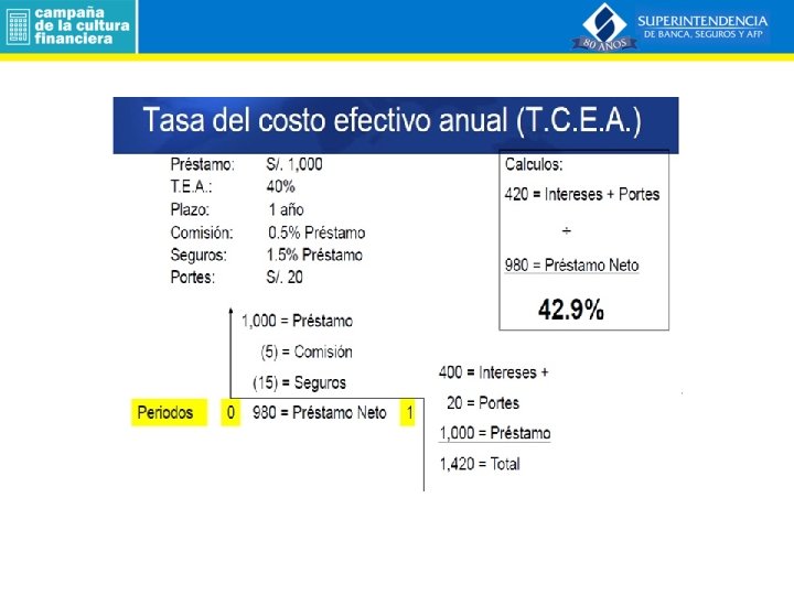 2. 2 TASA DE COSTO EFECTIVO ANUAL (TCEA) Gastos Comisiones TCEA TEA Cargos cobrados por cuenta de terceros (ej. Seguros desgravamen) Cargos por servicios brindados por la entidad y asumidos por el cliente (ej. Estados de cuenta) Tasa de interés compensatorio efectiva anual. La Tasa de Costo Efectivo Anual (TCEA) es la tasa que incluye todo lo que se paga por un crédito. Artículo 17° del Reglamento de Transparencia