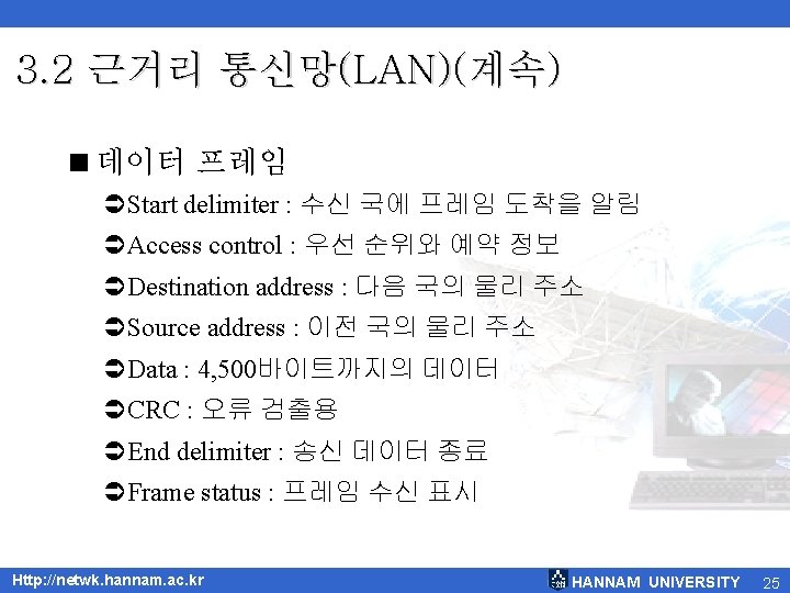 3. 2 근거리 통신망(LAN)(계속) <구현 Http: //netwk. hannam. ac. kr HANNAM UNIVERSITY 27