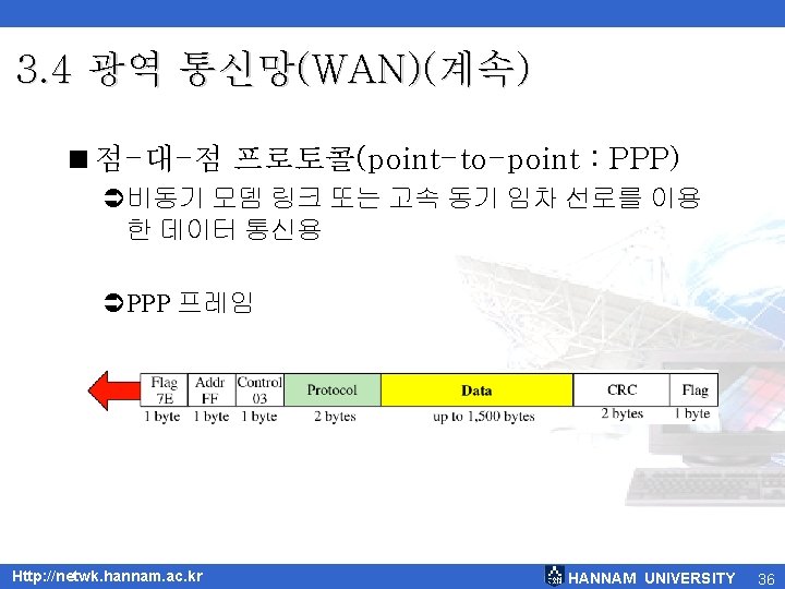 3. 4 광역 통신망(WAN)(계속) <프레임 중계 프레임 형식 Http: //netwk. hannam. ac. kr HANNAM UNIVERSITY 44