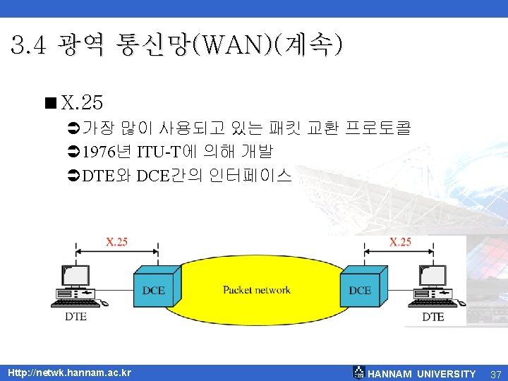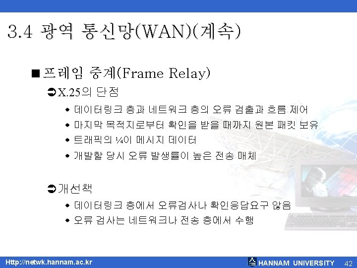 3. 4 광역 통신망(WAN)(계속) <X. 25와 프레임 중계 비교 Http: //netwk. hannam. ac. kr HANNAM UNIVERSITY 43