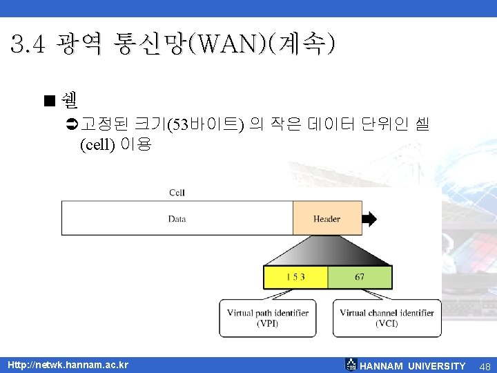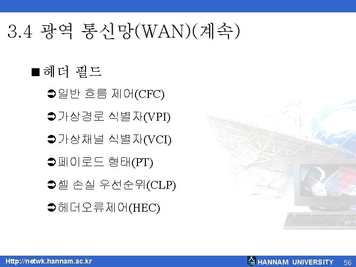 3. 4 광역 통신망(WAN)(계속) <ATM 헤더 영역 Http: //netwk. hannam. ac. kr HANNAM UNIVERSITY 55