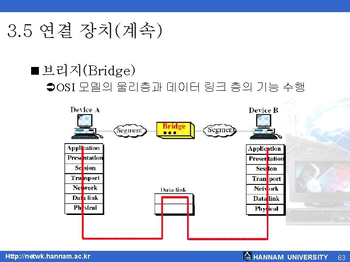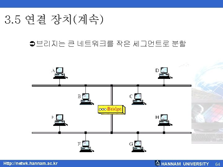 3. 5 연결 장치(계속) Ü브리지의 기능 Http: //netwk. hannam. ac. kr HANNAM UNIVERSITY 65