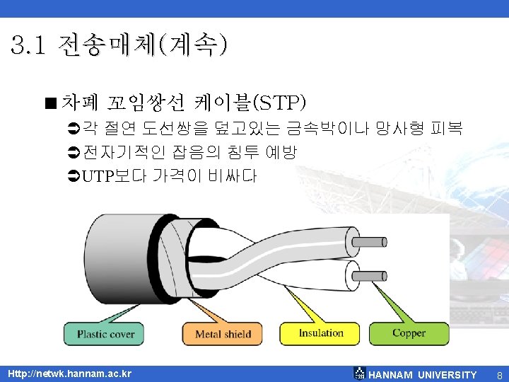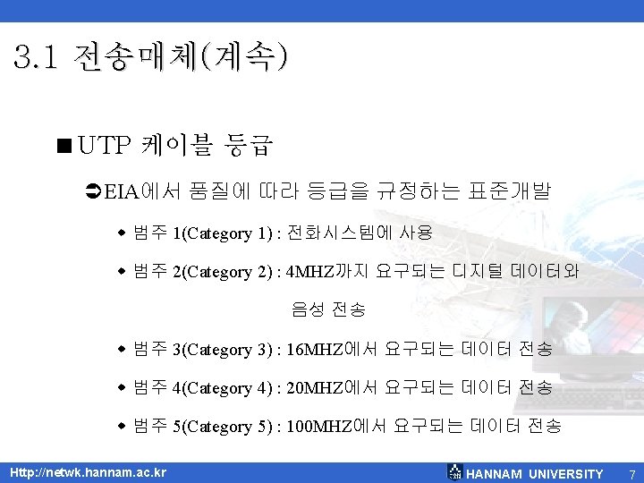 3. 1 전송매체(계속) <유도매체 Http: //netwk. hannam. ac. kr HANNAM UNIVERSITY 3