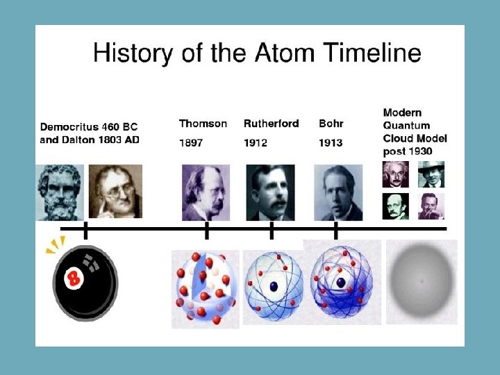 History of the Atom • Niels Bohr – 1913 – proposed that electrons orbited the atom in fixed positions • Many others were involved in the development of atomic theory: Shrodinger, de Broglie, Heisenberg, Chadwick, Einstein, Max Planck