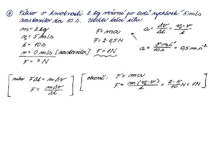③ Těleso o hmotnosti 2 kg vržené po ledě rychlostí 5 m/s se zastavilo za 10 s. Určete třecí sílu.