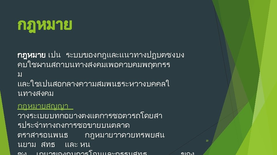 Thai Legislation. Ministerial Regulation No. 25 (1976) issued under Forest Act, 1941 on transformation of timber and possession of transformed timber Ministerial Regulation No. 26 (1985) issued under the Forest Act, 1941 on transportation of timber or forestry product. Ministerial Regulation No. 27 (1987) issued under Forest Act, 1941 on trading or possession for trading of timber products, equipment or anything derive from Restricted Species. Rule of Royal Forest Department laying down for checking, sealing, collection the royalty of timber, firewood or charcoal, 1967 Circular Notice of RFD No. Gor Sor 0704. 3/540 issuing on 23 January 2003 29