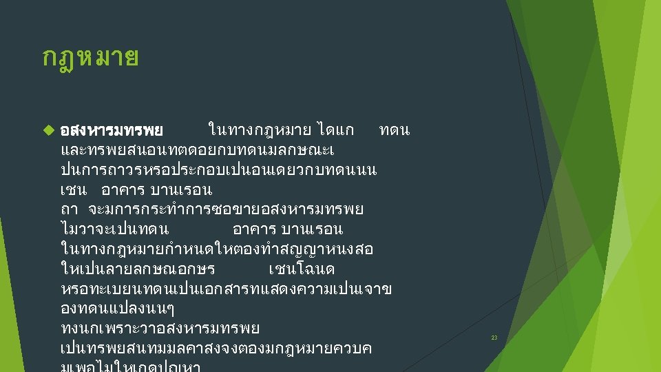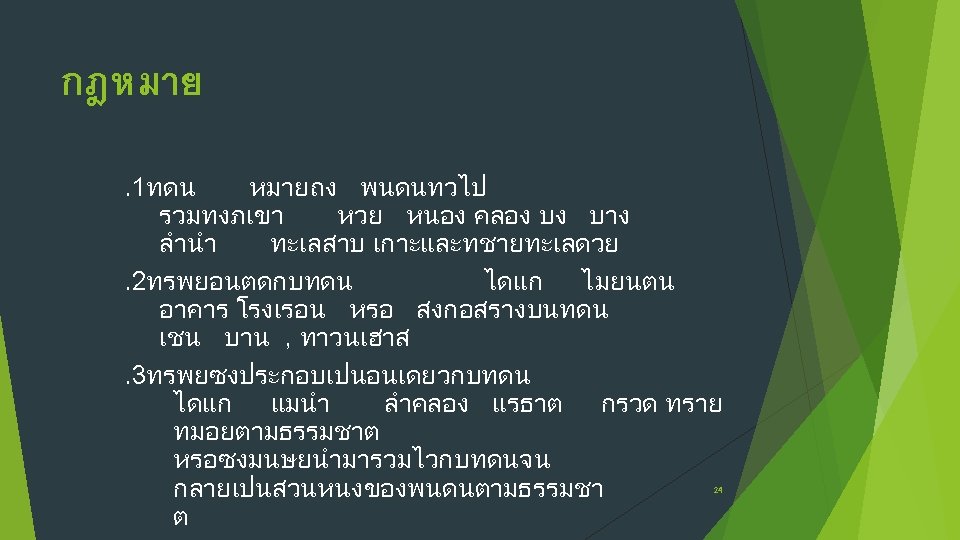Thai Legislation. 1. 6 State Land Act, 1975 1. 7 Land Code 1. 8 Civil and Commercial Code 1. 9 Export and Import of Goods Act, 1979 1. 10 1. 11 The Customs Tariff Decree, 1987 Customs Act, 1926 31