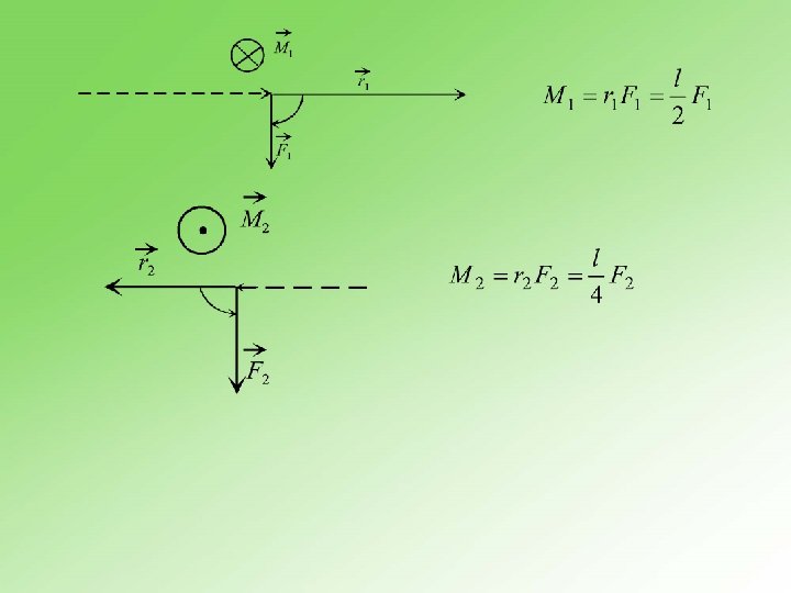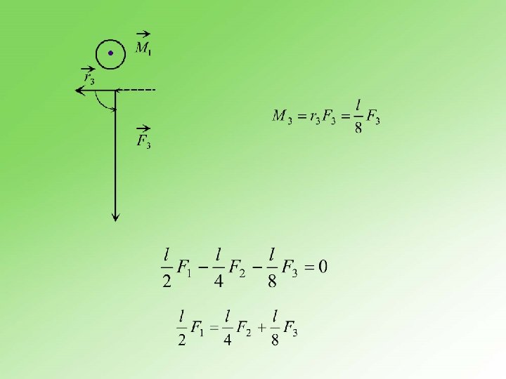 Svako čvrsto telo koje može da se obrće oko tačke oslonca je poluga. n Primer Razmotrimo primer šipke dužine l na slici 3. 16. 1. Osa rotacije prolazi kroz njen centar mase, a sile koje deluju na polugu su prikazane na slici.