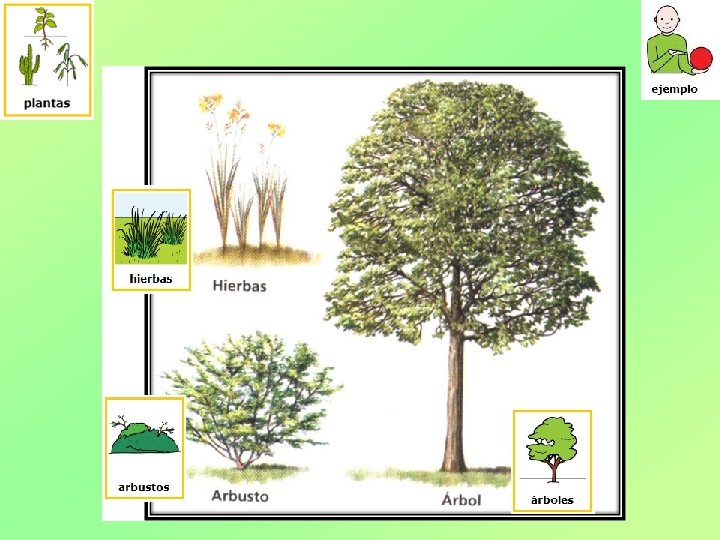 3 de Primaria Unidad 4 Las plantas Las Slides: 27 Download presentation 3º de Primaria Unidad 4 Las plantas Las plantas fabrican su propio alimento del aire, agua y minerales de la tierra. Para vivir y crecer necesitan: agua, luz, minerales y aire. Las plantas no tienen órganos de los sentidos y no pueden moverse. Se dividen en: raíz, tallo y hojas La raíz es la parte que sujeta la planta a la tierra y absorbe el agua del suelo El tallo y las hojas El tallo mantiene recta a la planta, y las hojas fabrican el alimento de la planta. La mayoría de las plantas se reproducen a través de flores, que después forman frutos y semillas. Semillas Hay plantas que producen semillas y otras que no producen semillas. Árboles, arbustos o hierbas Según su tallo las plantas pueden ser: árboles, arbustos o hierbas. Los árboles tienen un tallo único grueso y duro que es el tallo. Son las plantas de más tamaño. CHOPO PINO CASTAÑO Los arbustos tienen uno o más tallos duros que se dividen en ramas, tienen un tamaño medio. TOMILLO ROMERO Las hierbas tienen un tallo verde y delgado. Suelen ser plantas pequeñas. TRÉBOL AMAPOLA La vegetación es el conjunto de plantas que hay en una zona… y que están preparadas para vivir allí. Las plantas son muy útiles, ya que nos alimentamos y obtenemos materiales de ellas. EL TRIGO LA JUDÍA LA PATATA