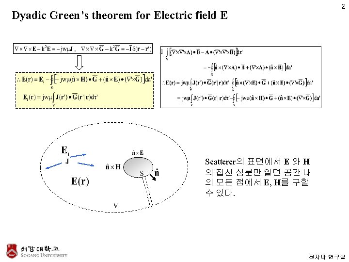 3 Derivation of Green’s theorem for E-field (a는 임의의 상수 벡터. ) (Vector Green’s identity) 전자파 연구실