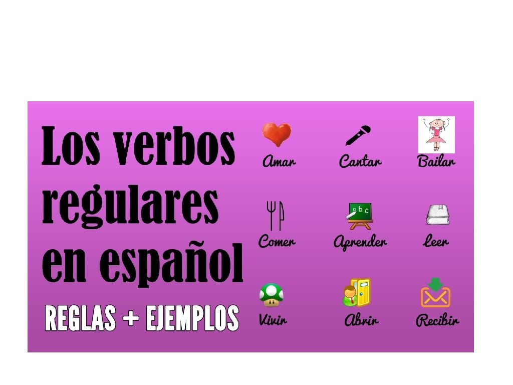 - AR - ER hablar preguntar bailar caminar escuchar aprender leer vender comer beber -IR vivir escribir recibir corregir compartir