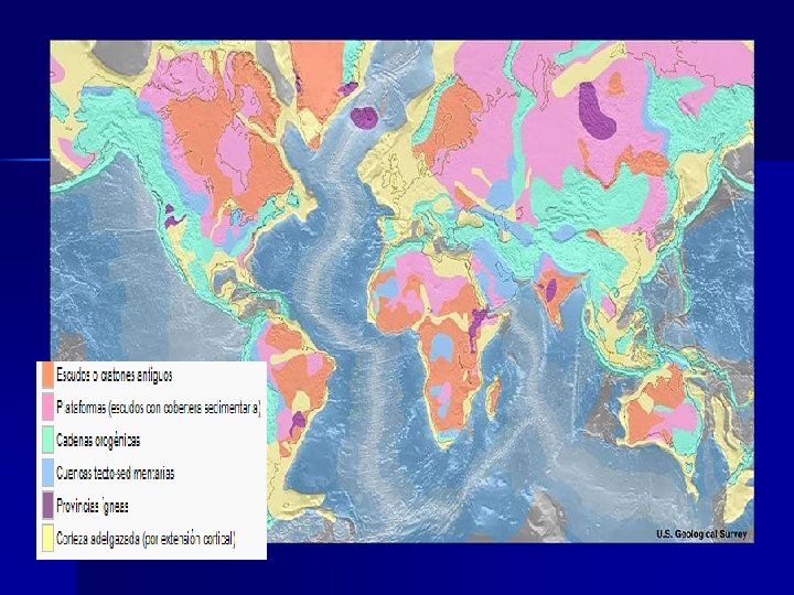 3. Historia de los continentes Sesión 9 3. 1. Estudio de la Historia de los continentes Para trazar la Historia de los continentes, los geólogos analizan las rocas que se encuentran en su superficie y en profundidad, determinando su proceso de formación y edad. Diferenciamos dos partes fundamentales: n n Las partes más antiguas formadas en la era Precámbrica y denominadas CRATONES. Las zonas de formación más reciente, debido a los plegamientos y que se llaman ORÓGENOS.