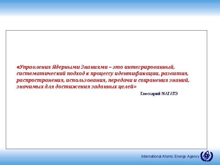 Менеджмент Ядерных Знаний 9 International Atomic Energy Agency