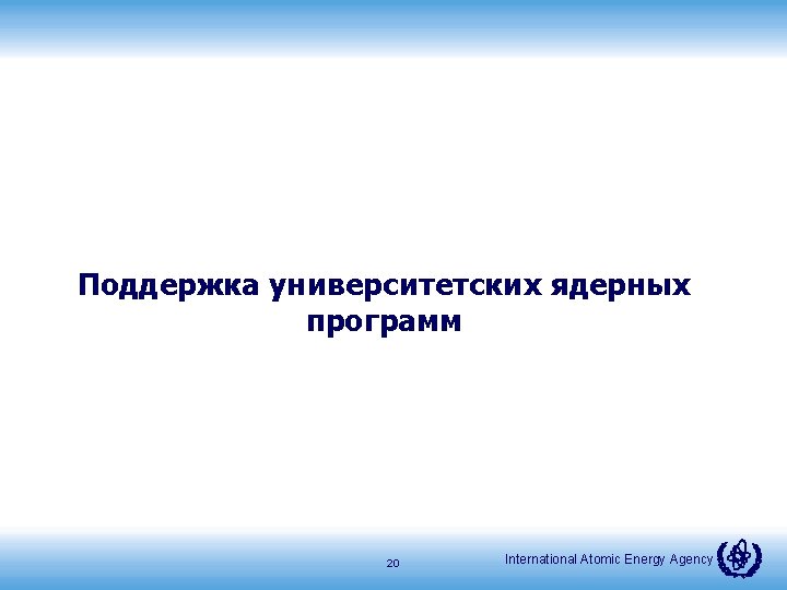 NKM Connect/ E-catalogue http: //connect. iaea. org/sites/connect/Pages/default. aspx 19 International Atomic Energy Agency