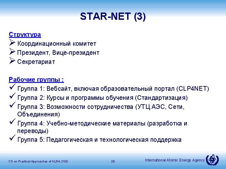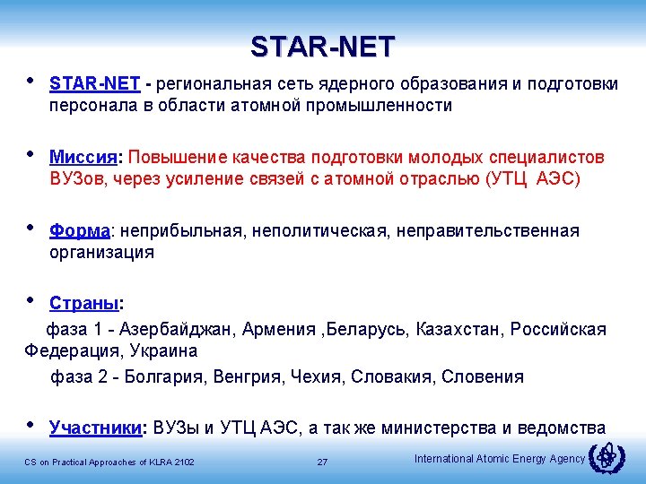 STAR-NET 26 International Atomic Energy Agency
