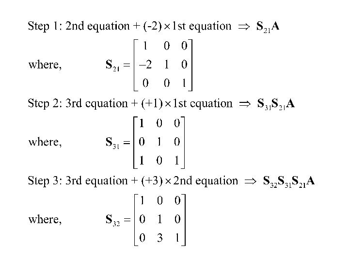 Elementary Row Operation Any row manipulation can be accomplished by pre-multiplication of elementary matrices!