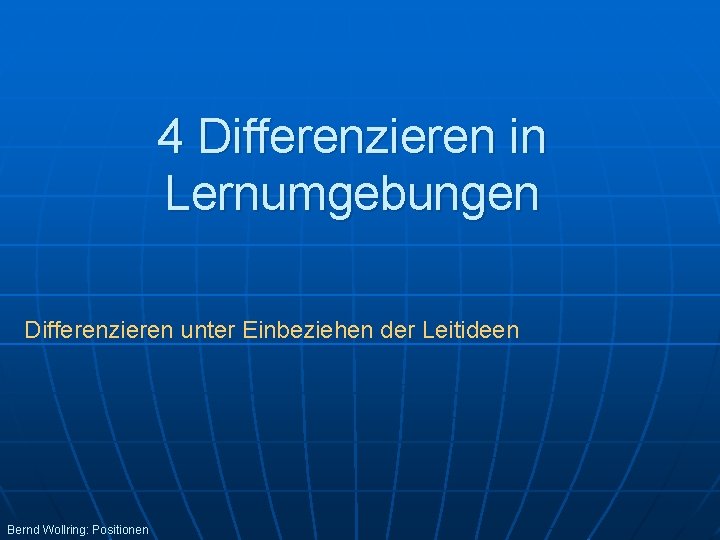 4 Differenzieren in Lernumgebungen Differenzieren unter Einbeziehen der Leitideen Bernd Wollring: Positionen