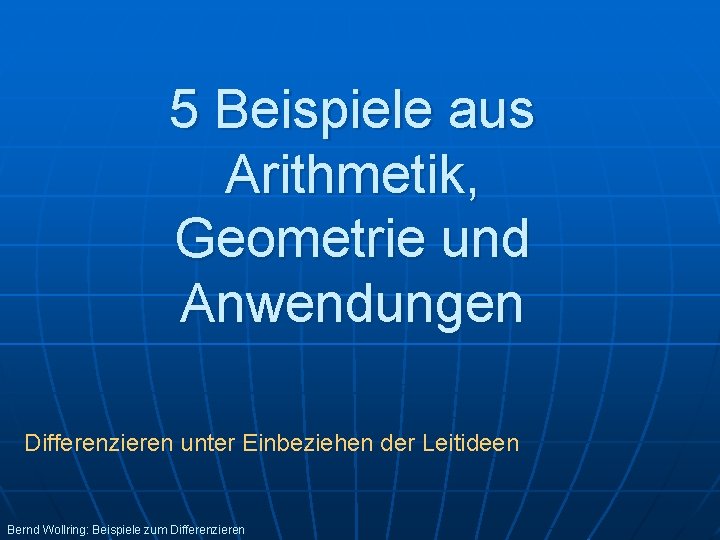 5 Beispiele aus Arithmetik, Geometrie und Anwendungen Differenzieren unter Einbeziehen der Leitideen Bernd Wollring: Beispiele zum Differenzieren
