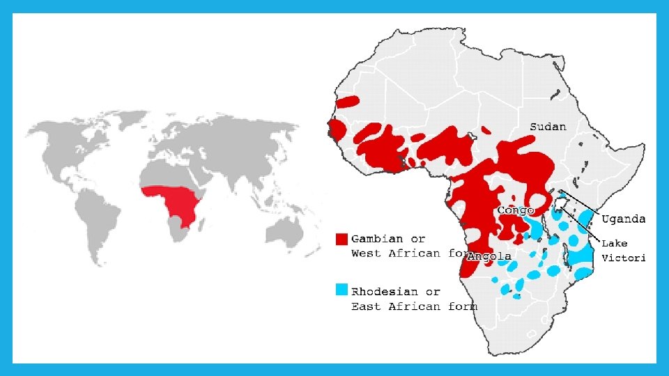 BOLEST SPAVANJA – RASPROSTRANJENOST - u Zapadnoj i Centralnoj Africi prevladava kronični oblik bolesti uzrokovan podvrstom T. brucei gambiense, dok u Istočnoj Africi podvrsta T. brucei rhodesiense uzrokuje akutni oblik bolesti - ova je bolest u nekim regijama subsaharske Afrike redovita pojava, a stanovništvo izloženo riziku broji oko 70 milijuna ljudi u 36 zemalja; godine 2010. bolest spavanja izazvala je smrt oko 9. 000 ljudi, što predstavlja smanjenje u odnosu na 34. 000 smrtno stradalih 1990. ; procjenjuje se da je u ovom trenutku zaraženo 30. 000 ljudi, s time da je 2012. novozaraženih bilo 7. 000; više od 80% svih slučajeva zabilježeno je u Demokratskoj Republici Kongo; u nedavnoj povijesti dogodile su se tri veće zaraze: prva, od 1896. do 1906. , prvenstveno u Ugandi i porječju Konga, a druge dvije 1920. i 1970. u nekoliko afričkih zemalja