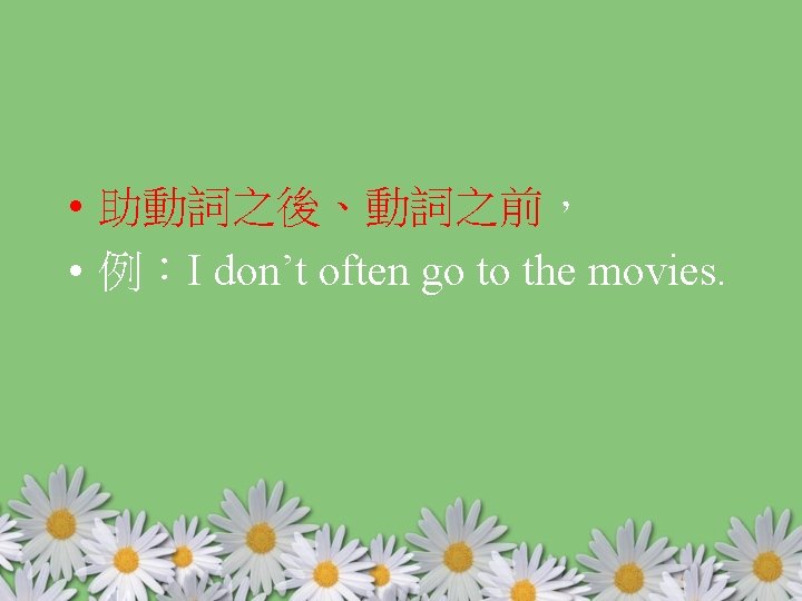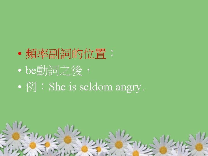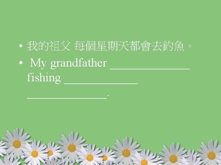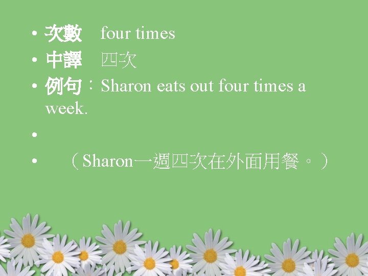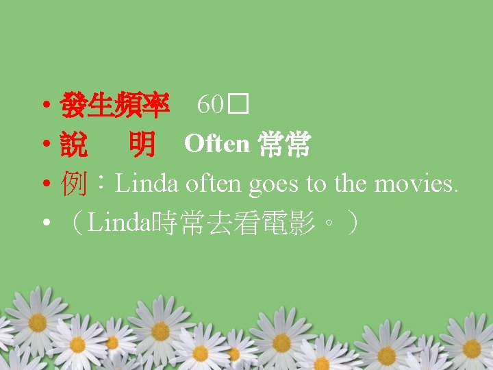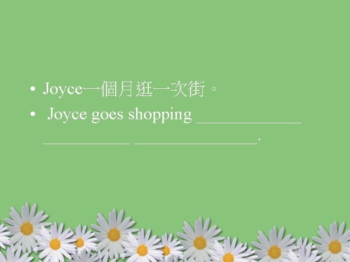 3 Sara Sara play sports on the weekend Slides: 23 Download presentation • 3. Sara時常在週末運動。 • Sara _____play sports on the weekend. • 4. Cynthia很少使用電腦。 • Cynthia _____ the computer. • 3. Thomas很少在家裡上網。 • Thomas ___surfs the Internet at home. • Olivia 一個月健行2次。 • Olivia goes hiking twice a month. . Goodbye
