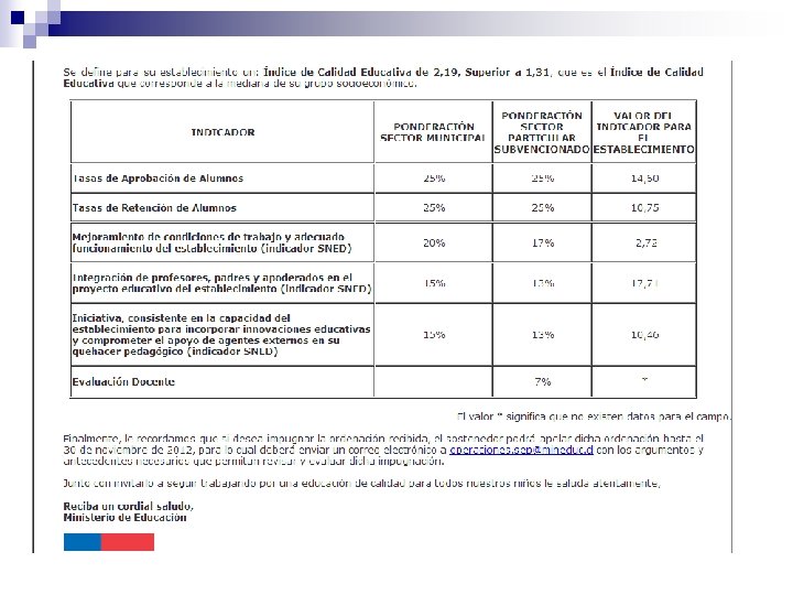 % MOROSIDAD Y ASISTENCIA AÑO 2012 % Asistencia a % Morosidad a Septiembre Curso PRE-KINDER A 83% 22, 10% 7°A 84, 4% 17, 50% PRE-KINDER B 85, 5% 8, 04% 7°B 84, 7% 46, 09% KINDER A 82, 0% 19, 27% 8°A 83, 4% 13, 47% KINDER B 85, 6% 12, 41% 8°B 82, 7% 39, 11% 1°A 83, 4% 30, 51% 8°C 85, 4% 14, 31% 1°B 83, 8% 23, 96% I°A 76, 1% 30, 89% 2°A 85, 5% 30, 84% I°B 83, 5% 30, 21% 2°B 83, 4% 19, 66% I°C 84, 4% 25, 62% 3°A 83, 6% 43, 55% II°A 76, 3% 34, 54% 3°B 78, 8% 38, 94% II°B 81% 32, 35% 4°A 88, 8% 18, 68% III°A 71, 5% 42, 40% 4°B 84, 7% 38, 50% III°B 77% 32, 97% 5°A 85, 6% 21, 14% IV°A 74, 2% 33, 49% 5°B 86, 1% 38, 79% IV°B 68, 9% 39, 54% 6°A 87, 2% 35, 15% IV°C 65, 4% 51, 58% 6°B 86, 4% 24, 91%