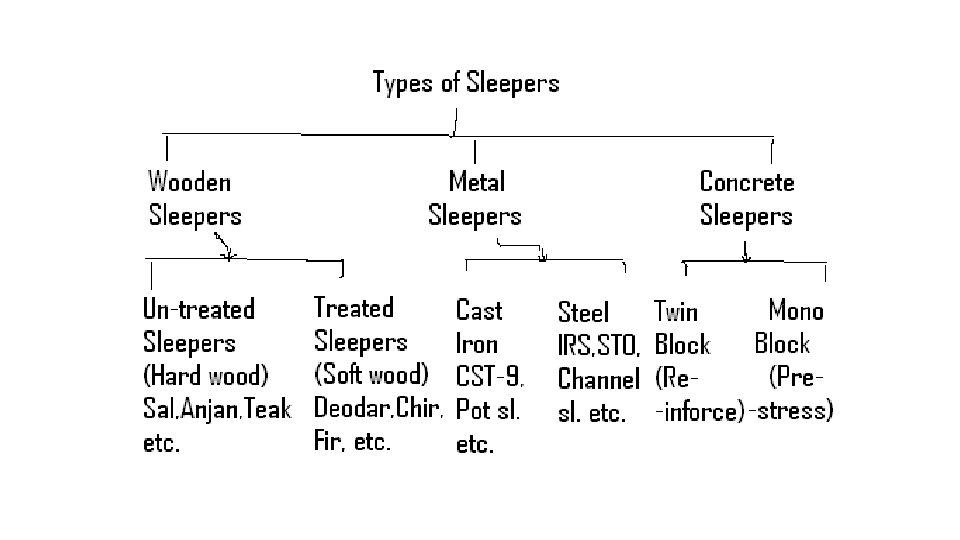 Obsolete Sleepers: Steel Trough Sleepers, Pot Sleepers Current Sleepers : Steel Channel Sleepers, PSC sleepers, Fan Shaped T/O Sleepers