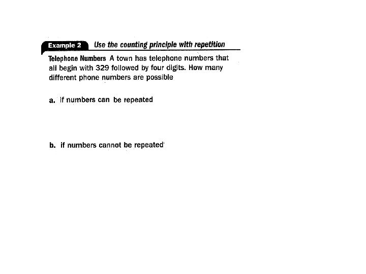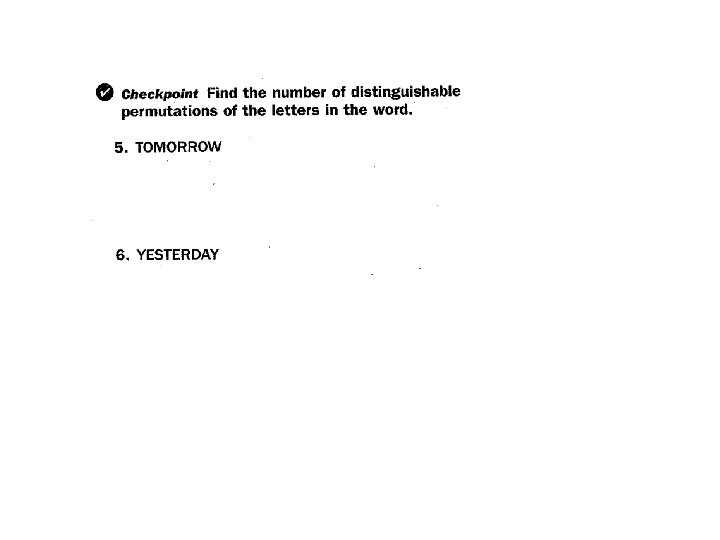 • Permutation of n Objects Taken r at a Time • The number of permutations of r objects taken from a group of n distinct objects is denoted by n. Pr and is given by this formula: • __________________