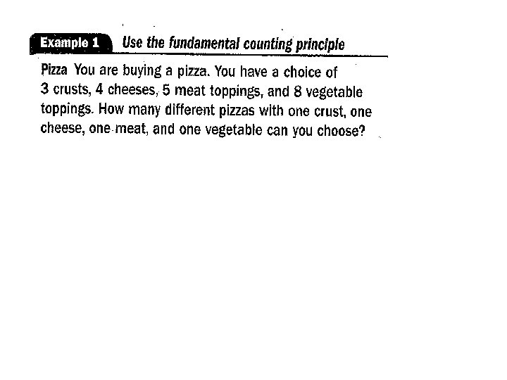 Fundamental Counting Principle: Another way to __________________ • Two Events: If one event can occur in m ways and another event can occur in n ways, then _____________________ • Three of More Events: The fundamental counting principle can be extended to three or more events. For example, if three events can occur in m, n, and p ways, then ________________________________________