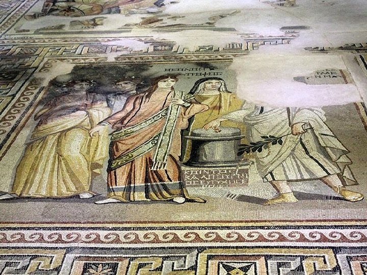 KAHVALTIDA KADINLAR MOZAİĞİ M. S. 2. – 3. YÜZYIL ZEUGMA ANTİK KENTİ, ZOSİMOS VİLLASI WOMEN AT BREAKFAST MOSAIC 2 ND – 3 RD CENTURY A. D. THE ANCIENT CITY OF ZEUGMA, ZOSIMOS VILLA