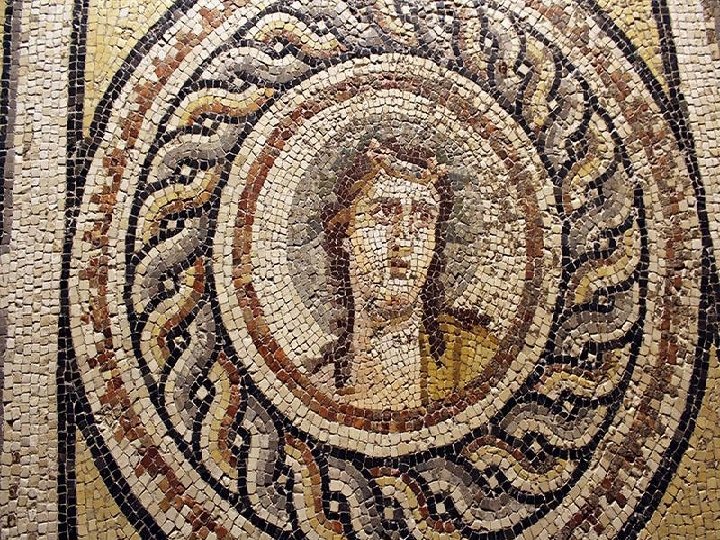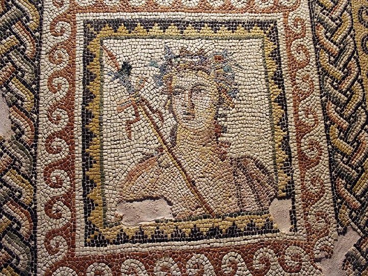 DİONYSUS BÜSTÜ MOZAİĞİ M. S. 2. – 3. YÜZYIL OKEANOS VİLLASI THE BUST OF DIONYSUS MOSAIC 2 ND – 3 RD CENTURY A. D. THE HOUSE OF OCEANOS