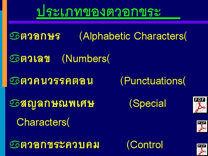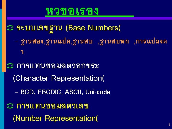 322 162 Introduction to Computer Organization and Architecture Episode 2 Character Representation การแทนขอมลตวอ