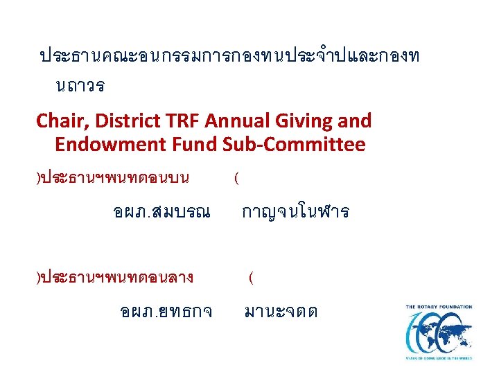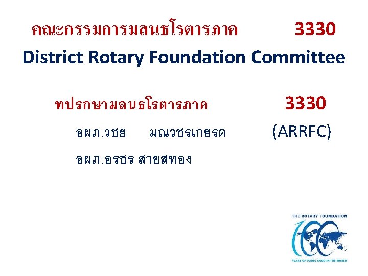 ภาพรวมของมลนธโรตารภาค 3330 THE ROTARY FOUNDATION OF ROTARY INTERNATIONAL DISTRICT 3330