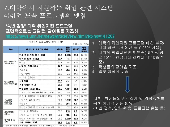 7. 대학에서 지원하는 취업 관련 시스템 3)취업 도움 프로그램 � 취업 관련 특강 http: //www. hansung. ac. kr/web/www/cmty_01_01? p_p_id=EXT_BBS&p_p_lifecycle=0&p_p_state=normal&p_p_mode=vie w&_EXT_BBS_struts_action=%2 Fext%2 Fbbs%2 Fview_message&_EXT_BBS_message. Id=725532 � 취업캠프 취업정보자료집 발간 � 인·적성 또는 심리검사 � 현장견학 선후배와의 만남 등 �