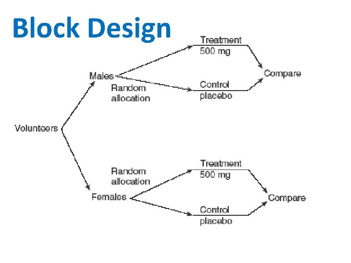 Block Design • Experiments are often blocked by – Age – Gender – Race – Achievement Level (Regular, Honors, AP, IQ level, etc. )