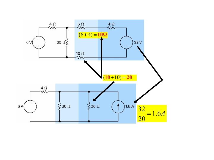 Example 4. 8 (a) find the power associated with the 6 V source (b) State whether the 6 V source is absorbing or delivering power We are going to use source transformation to reduce the circuit, however note that we will not alter or transfer the 6 V source because it is the objective.