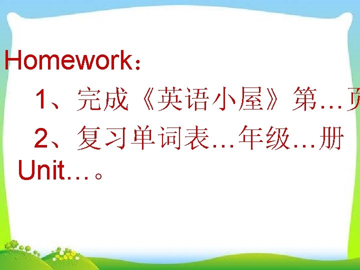 5. It’s eight o’clock. Jim’s family __TV. B A. is watching B. are watching C. watch D. to watch B cake __my birthday. 6. My mother is __a A. making , to B. making , for C. doing , to D. doing , for 7. Let me B __these books in the box. A. puts B. put C. to put D. putting C 8. __you __the window? —Yes, I am. A. Do, clean B. Is, cleaning C. Are, cleaning D. Do, cleaning