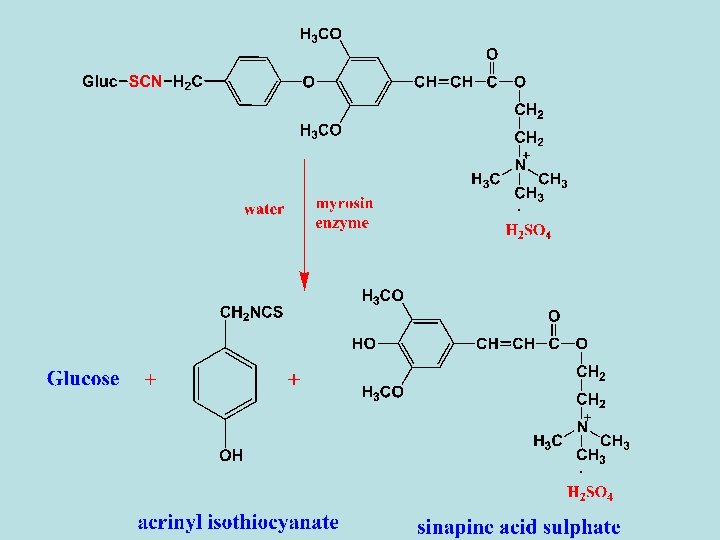 - Enzymatic hydrolysis of sinalbin with myrosin enzyme in the presence of water gives acrinyl isothiocyanate (non-volatile oily liquid), sinapine acid sulphate and glucose. - Sinapine acid sulphate can be converted to Uses - The same as sinigrin. cholin as following