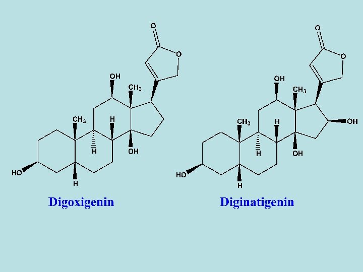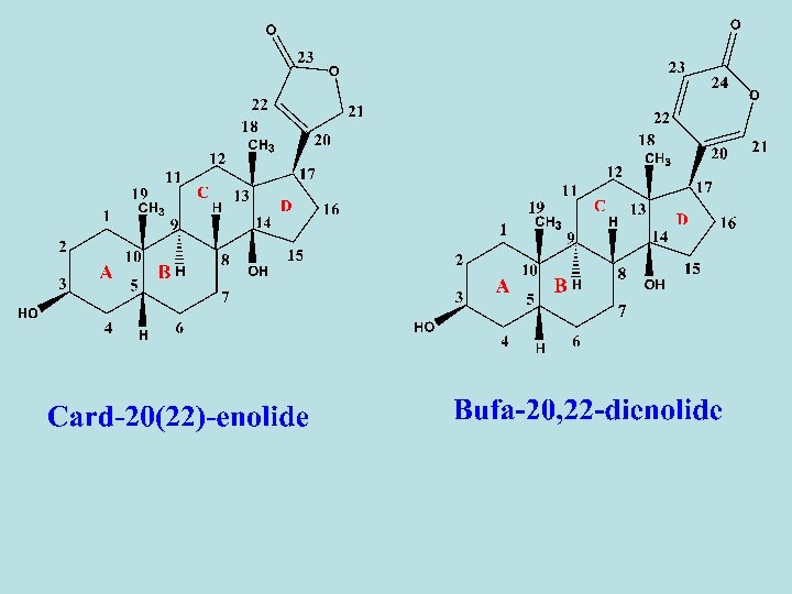 - They are widely distributed in some families as apocyanaceae as strophanthus seed or Scrophulariaceae as digitalis leaves or Liliaceae as squill. - Chemically or structurally, the aglycones of cardiac glycosides are steroids, which is a group of tetracyclic saturated secondray alcohol in which the side chain is an unsaturated lactone ring, which can be either 5 - or 6 -membered attached to C-17 of the steroidal skeleton. - The various aglyones differ mainly in the numbers and positions of the hydroxyl substituents and in the extent of oxidation of the C-19 methyl group. - Almost all the known aglycones have two β-orinted hydroxyl groups, one at C-3 and the other at C-14.