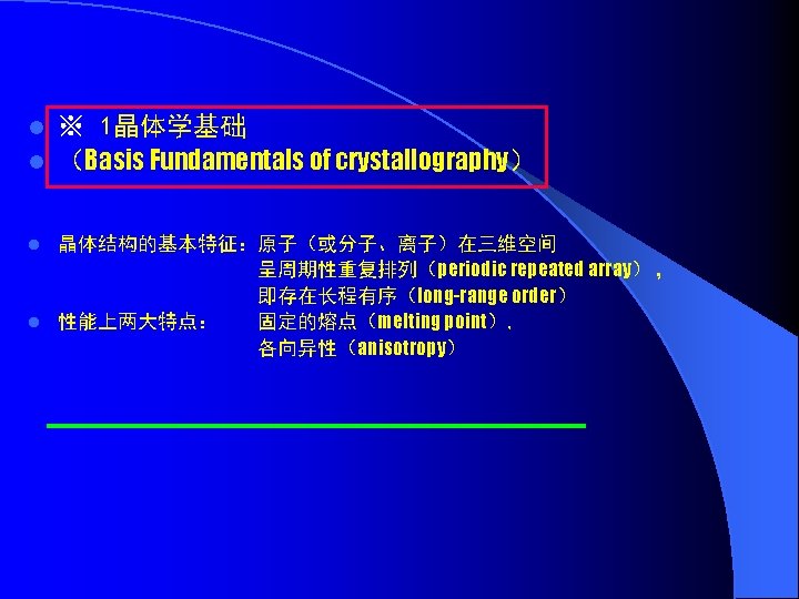晶胞中的原子数(Number of atoms in unit cell) 点阵常数(lattice parameter)a,c 原子半径(atomic radius) R 配位数(coordination number) N 致密度(Efficiency of space filling) 轴比(axial ratio) c/a