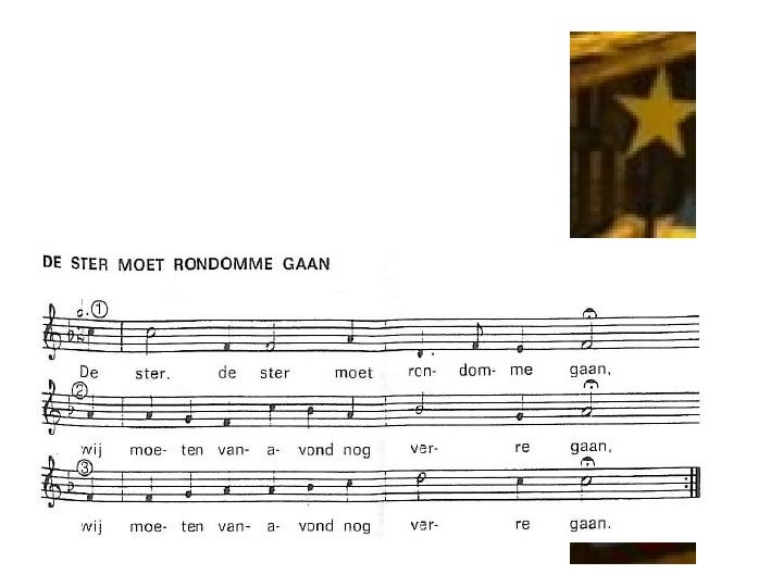 Gij sterre gij moet er zo stille niet staan, à la berline postiljon. Gij moet er met ons naar Bethlehem toe gaan, à la berline postiljon, Van cher ami tot in de knie, wij zijn drie koningskinderen, sa pater trok naar Vendelo van cher ami,