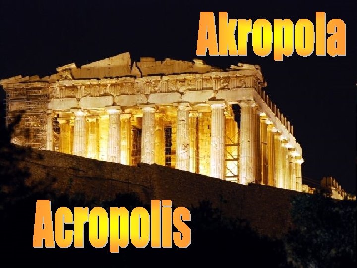 Aténska Akropola je monumentálny komplex stavieb, symbol klasického gréckeho umenia a kultúry, vybudovaný na návrší kopca Akropolis, týčiaceho sa nad hlavným mestom Grécka, Aténami. The Acropolis of Athens is a monumental complex of buildings, a symbol of classical Greek art and culture, built on the Acropolis hill, towering over the capital of Greece, Athens.