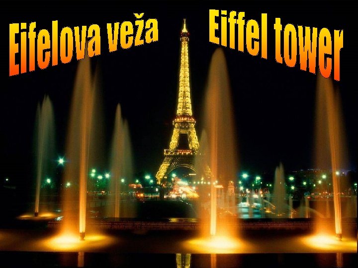 Eiffelova veža Je najvyššou stavbou v Paríži a je jeden z najznámejších symbolov sveta. Veža je pomenovaná po jej staviteľovi Gustavovi Eiffelovi. Táto 324 metrov vysoká a 10 100 ton vážiaca architektonická dominanta bola uvedená do prevádzky v roku 1889. The Eiffel Tower is the highest building in Paris and one of the most famous symbols of the world. The tower is named after its builder Gustavo Eiffelovi. This architectural dominant has got 324 meters and 1000 tons and it has been used since 1889.