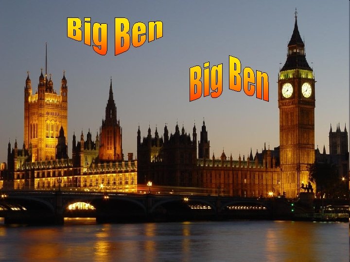 Hodinová veža Westminsterského paláca, nazývaná podľa jedného z jej zvonov Big Ben, sa týči na severovýchodnom konci paláca, v ktorom zasáda britský parlament, je jednou z najznámejších londýnskych pamätihodností. Clock Tower at Westminster Palace, called by one of the Big Ben bell, is situated on the north-eastern end of the palace, where the principle of the British Parliament has had meetings. It is one of the most famous London sights.
