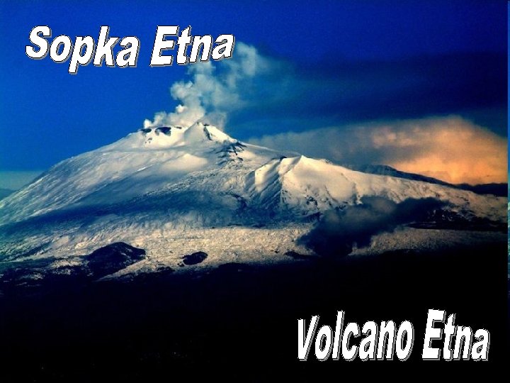 Etna je aktívna sopka nachádzajúca sa na východnom pobreží Sicílie. S výškou 3 350 metrov je to najväčšia sopka v Etna is an active Európe. Väčšiu časť roka sa na volcano located on vrchole drží snehová pokrývka. the east coast of Sicily. At an altitude of 3, 350 meters is the largest volcano in Europe. Most of the year it keeps the snow on the top.
