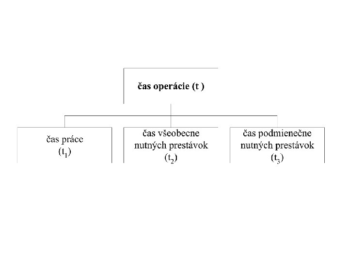 4. Členenie času operácie V súlade s platnou metodikou normovania spotreby času členíme čas operácie rovnako čas smeny na čas práce, čas všeobecne nutných prestávok a čas podmienečne nutných prestávok.