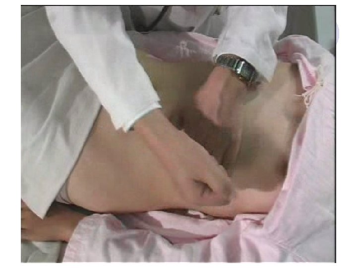 5. Fluid wave thrill with the patient in supine position, the examiner’s left hand is placed on the patient’ s right flank, an assistant (another person) places one hand on the middle of the abdomen to prevent the transmission of any wave through the tissues of the abdominal wall