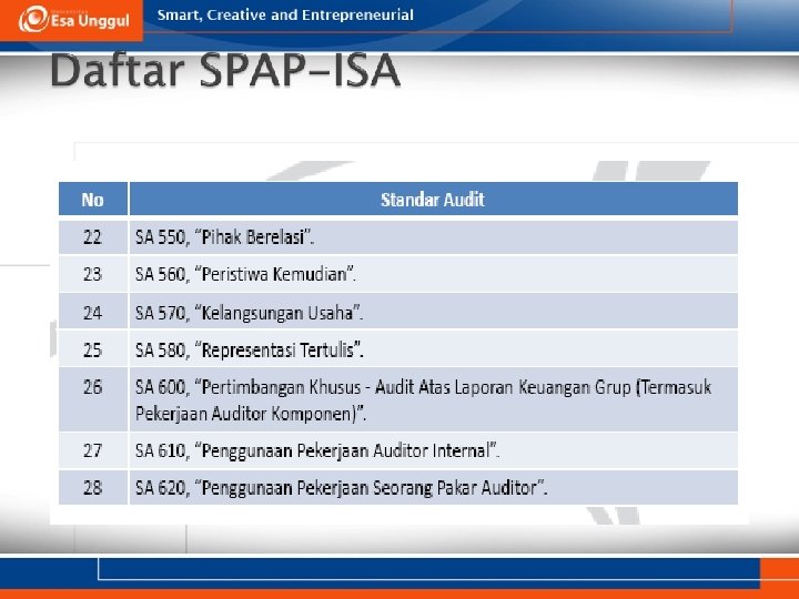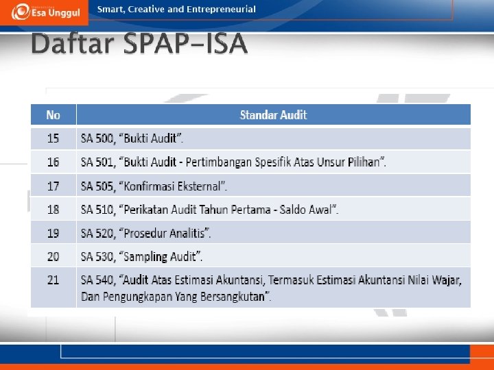 Standar Audit Prinsip Umum dan Tanggung Jawab SA 200 SA 210 SA 220 SA 230 SA 240 SA 250 SA 265 Penilaian Risiko dan Respons terhadap Risiko yang Dinilai SA 300 SA 315 SA 320 Bukti Audit Penggunaan Hasil Pekerjaan Pihak Lain SA 500 SA 600 SA 700 SA 800 SA 610 SA 705 SA 805 SA 706 SA 810 SA 501 SA 505 SA 510 Area Khusus SA 520 SA 330 SA 530 SA 402 SA 540 SA 450 SA 620 Kesimpulan Audit dan Pelaporan SA 550 SA 710 SA 720 SA 560 SA 570 SA 580 1 0