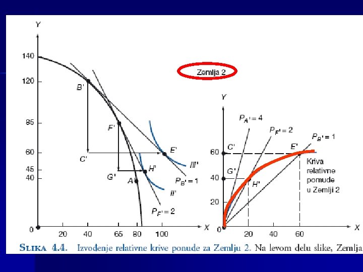 Šta pokazuje kriva relativne ponude? n n Ona nam pokazuje koliko traži proizvoda X da bi htela da izvozi različite količine proizvoda Y.