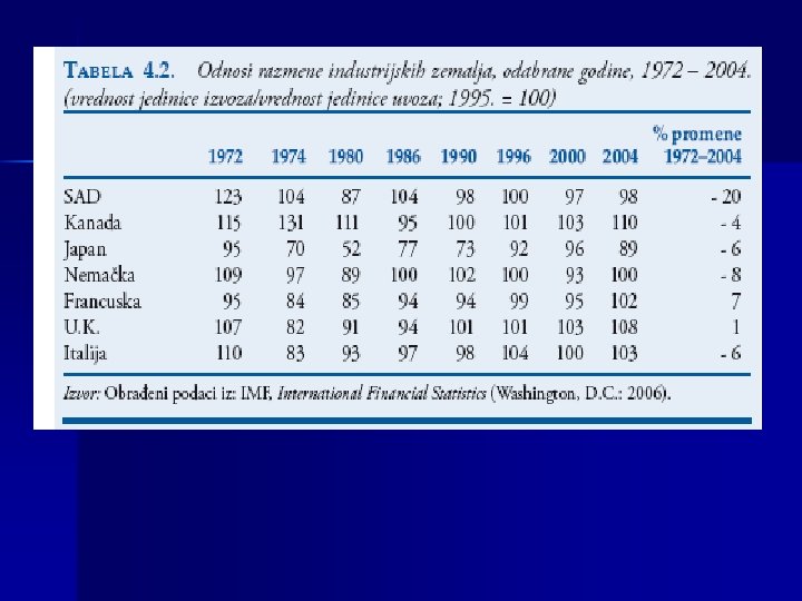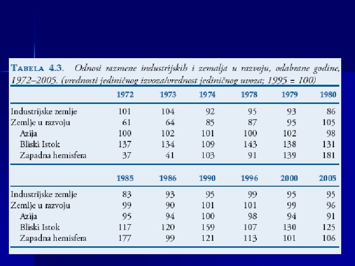 Podaci iz Tabele 4. 3 nam pokazuju da su se odnosi razmene industrijskih zemalja pogoršavali od 1972. do 1985