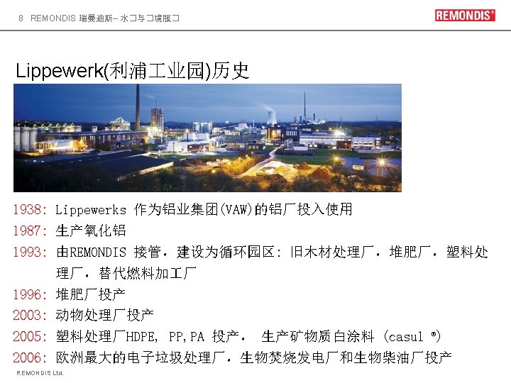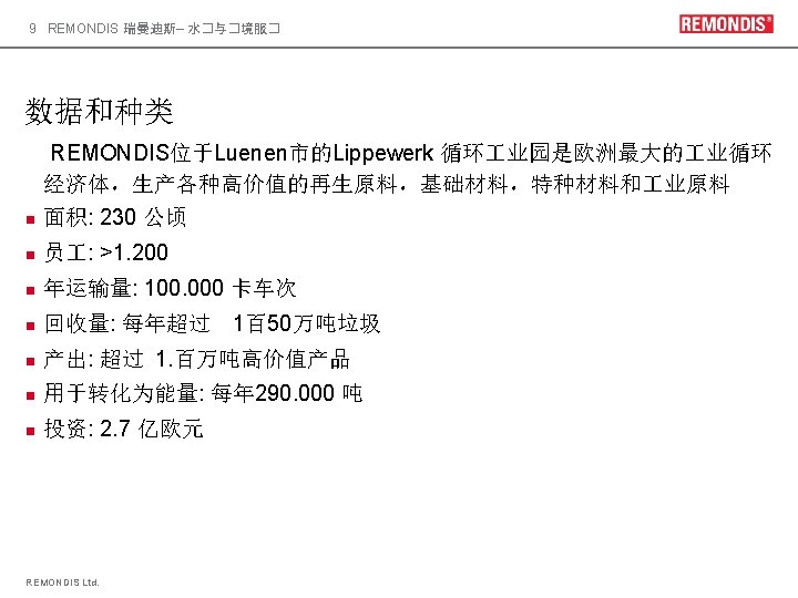 7 REMONDIS 瑞曼迪斯– 水�与�境服� Lippewerk-利浦 业园 REMONDIS Ltd. Luennen 吕嫩市